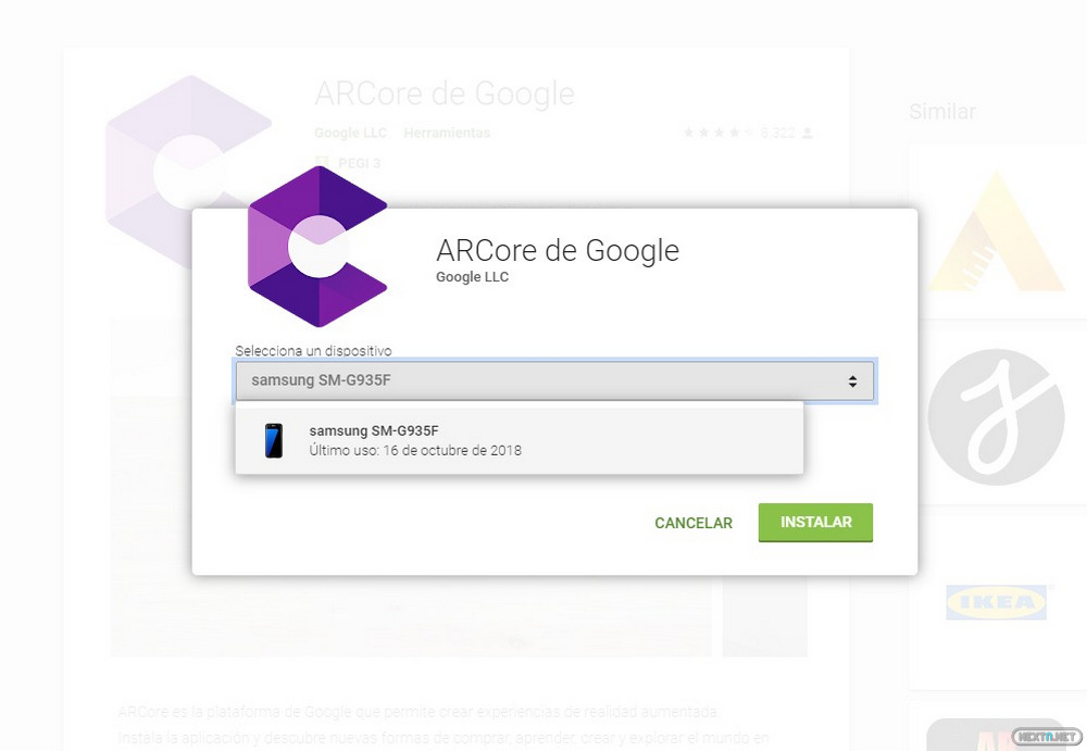 ¿Aparece en la lista? ¡Podemos continuar! Tan solo tendrías que buscar ARCore en la tienda de aplicaciones Google Play, y descargarla. ¿Qué ocurre? Que existe la posibilidad de que, aunque tu móvil o tablet aparezca en la lista, la app no se muestre en la búsqueda de Google Play, como nos ha pasado a nosotros.