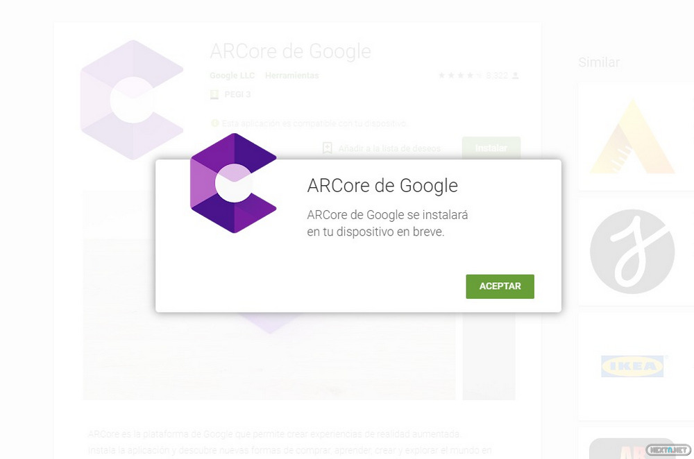 - Entonces, nos aparecerá este mensaje advirtiendo que pronto ARCore se instalará automáticamente en nuestro móvil o tablet. ¡Asegúrate que tenga conexión!