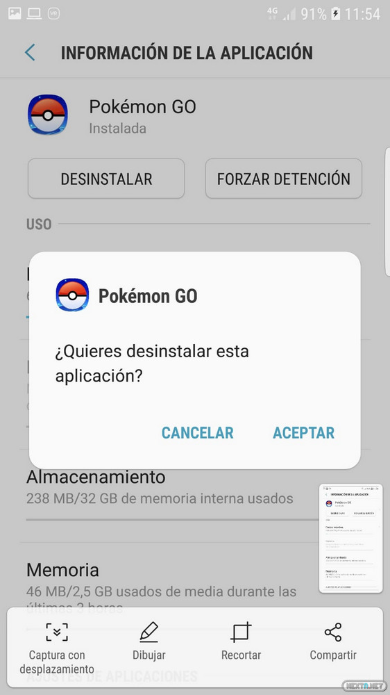 ¿No te aparece? Entonces te habrá pasado como a nosotros. Resulta que tener instalado ARCode no te activa de inmediato la opción de RA+ en Pokémon GO, probablemente porque ya tenías instalado Pokémon GO antes de esta app. Soluciones hay varias y sencillas. Lo primero de todo que puedes intentar es borrar la caché del juego y los datos, buscando Pokémon GO en el menú de apps instaladas en nuestro terminal Android.